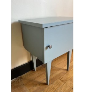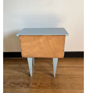 Table de nuit vintage repeinte dans une teinte bleue grisée.