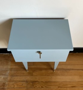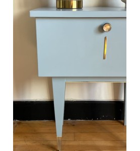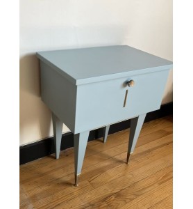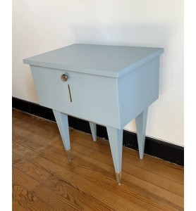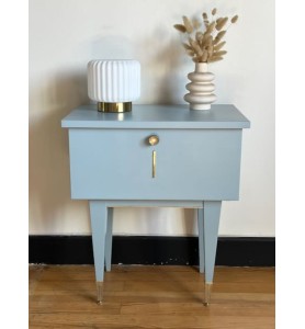 Table de nuit vintage repeinte dans une teinte bleue grisée.