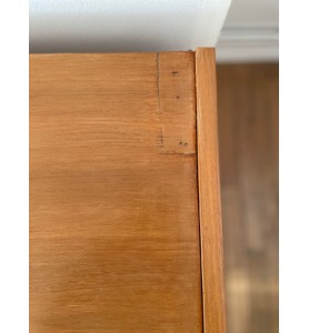 A noter : ce meuble est ancien et possède des traces du temps qui n'enlèvent en rien son charme : des éclats sur le vernis, quelques rayures sur le miroir et le plateau a dû subir un choc dans sa vie car une petite partie a été refixée par un de ses anciens propriétaires. (voir photos)