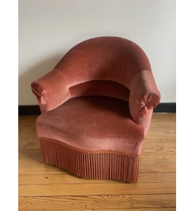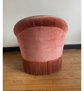 Un intemporel qui trouve toujours sa place dans nos intérieurs, passe-partout et si confortable, le fauteuil crapaud est un allié de choix. Roxane est en velours rose avec des pieds en bois et des jolies franges.