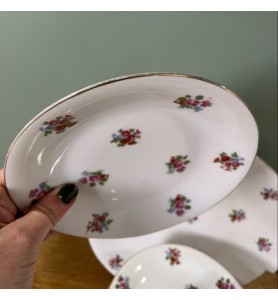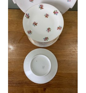 Service à vaisselle ancien, composé de 10 petites assiettes et 1 plat de service.
